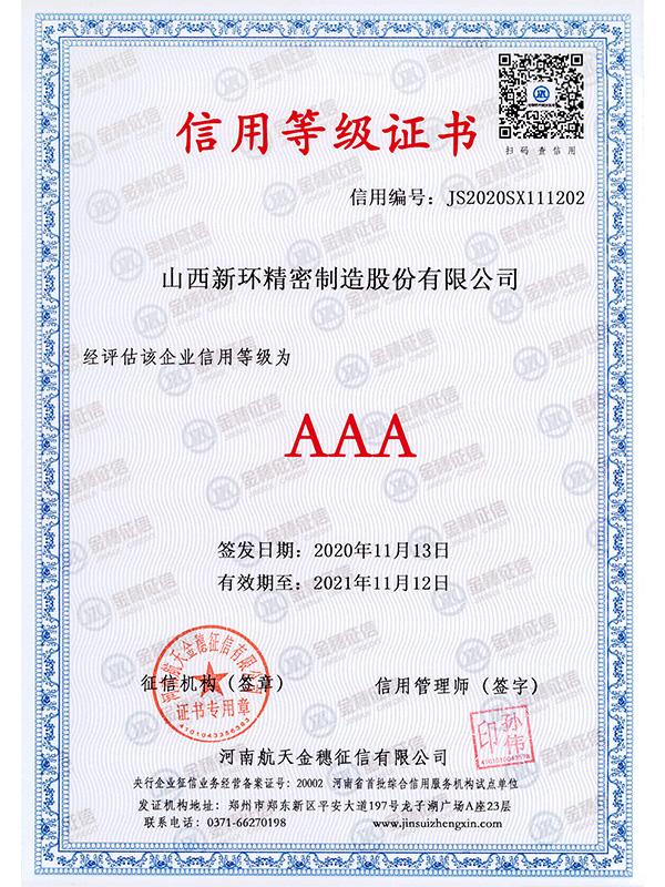 • 精密公司企業(yè)信用等級(jí)3A 001
